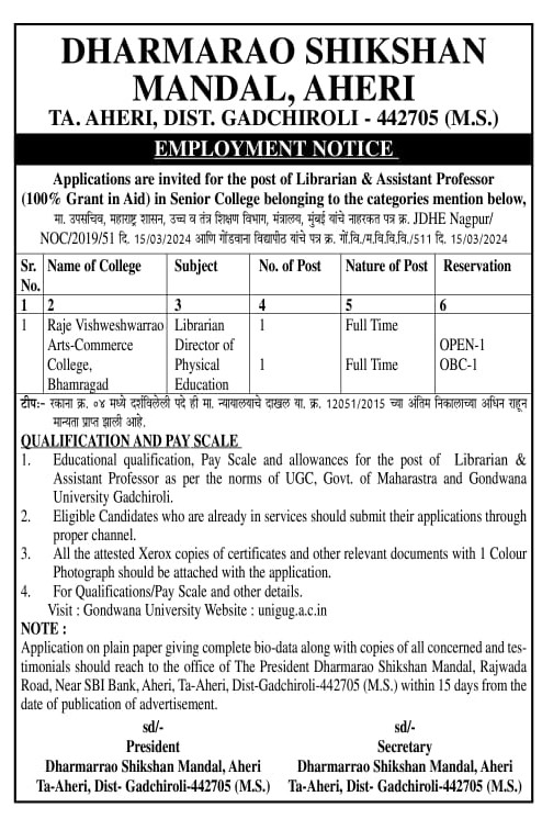 Reg. No. नोंदणी क्रमांक - महा / B -44 / 1958 (गड) एफ - 65 ( च ), पत्ता - मु.पो. अहेरी तह . अहेरी जि . गडचिरोली College Estd. : 2001 Affiliated to Gondwana University, Gadchiroli